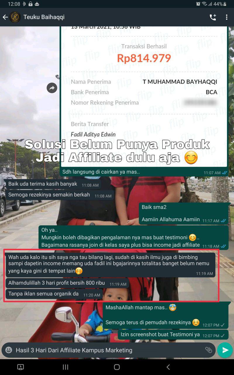 itu adalah hasil dari 3 hari pertama Teuku Baihaqqi saya bimbing untuk menghasilkan uang tanpa punya produk & modal besar